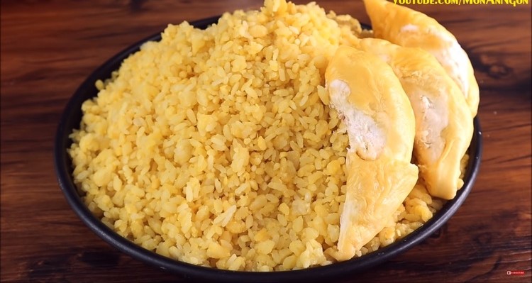 By combining the king of fruits and the pearl of the gods into the same dish, the Vietnamese people enjoy Durian Sticky rice on a lot of different occasions. As long as there is a gathering, chances are there is durian sticky rice. What makes durian sticky rice special is that durian and sticky rice are not the only ingredients in this dish. Traditionally, to prepare durian sticky rice, we start off with soaking the raw sticky rice in diluted coconut milk until they all swell up. This would help the sticky rice to absorb the fragrance and the creaminess of the coconut milk. We also soak mung beans in water for about half as long as we soak the sticky rice, then combine these two ingredients together to steam. Since the durian pulps and coconut milk are such delicate ingredients, we add them at the end of the cooking process to make sure they get just enough heat to infuse their fragrance into the rice. By the time the cooking process is finished, all that is left is to let the stick rice cool down and serve. Normally, because there is already durian meat mixed into the sticky rice, we don’t need any additional toppings. However, in order to make this dessert fancier, we can always add one or two durian pulps to it.